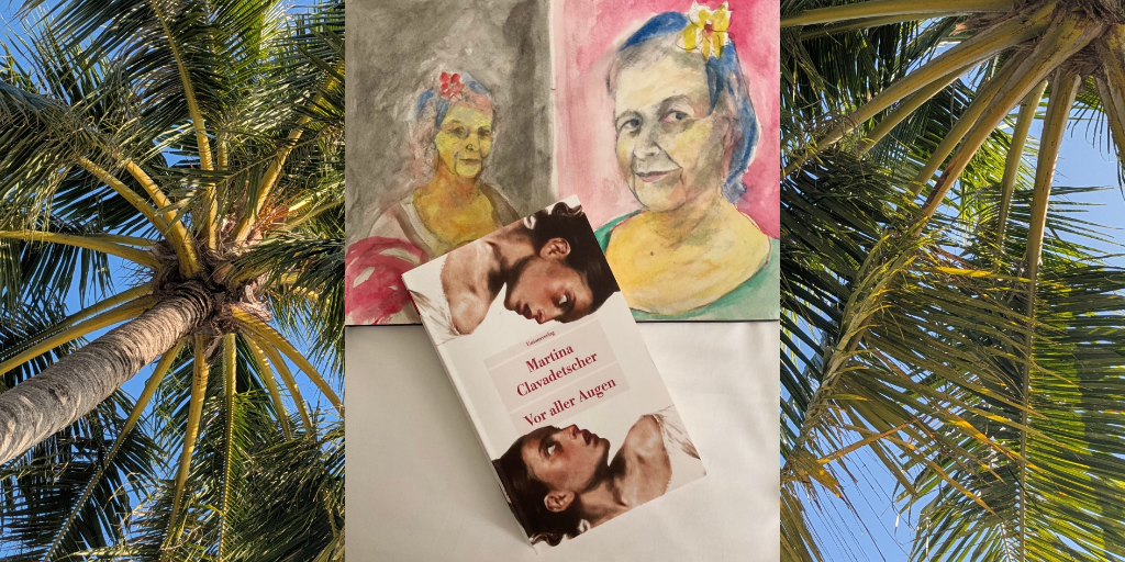 Ich las auf meiner Strandliege Martina Clavadetschers Buch, erzählte meinem Mann von den Bildern und den porträtierten Frauen. Er skizzierte derweil in der Pose des Selbstporträts von Angelika Kaufmann die Leserin. Das Buch hat sich also kurzzeitig quasi verdoppelt.