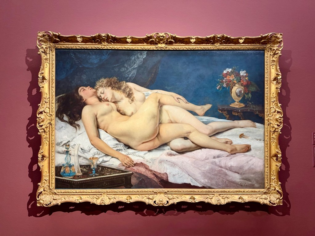 Die erste Ausstellung: die Retrospektive zum Werk von Gustave Courbet im Leopold Museum. Es ist die erste Schau in Österreich, 130 Bilder aus dem Gesamtwerk sind zu sehen. Ein Highlight! Courbet war ein Meister des Realismus, Vorbild nicht nur für Cezanne. In seiner Heimat Frankreich galt er als Rebell, wandte sich gegen die akademische Salonmalerei und stellte in seinen Bildern auch die arbeitende Bevölkerung dar. Er war Mitglied der Pariser Commune, wurde zu Unrecht verurteilt, landete im Gefängnis und verbrachte seine letzten Jahre im Exil in der Schweiz. Das berühmte Gemälde vom „Ursprung des Lebens“ (1866), ist hinter Sicherheitsglas zu sehen. Martina Clavadetscher hat sich in ihrem sehr lesenswerten Buch „Vor aller Augen“ (Rezension hier) mit dem Bild bzw. dem Modell auseinandergesetzt und Constance Quéniaux selbst sprechen lassen: