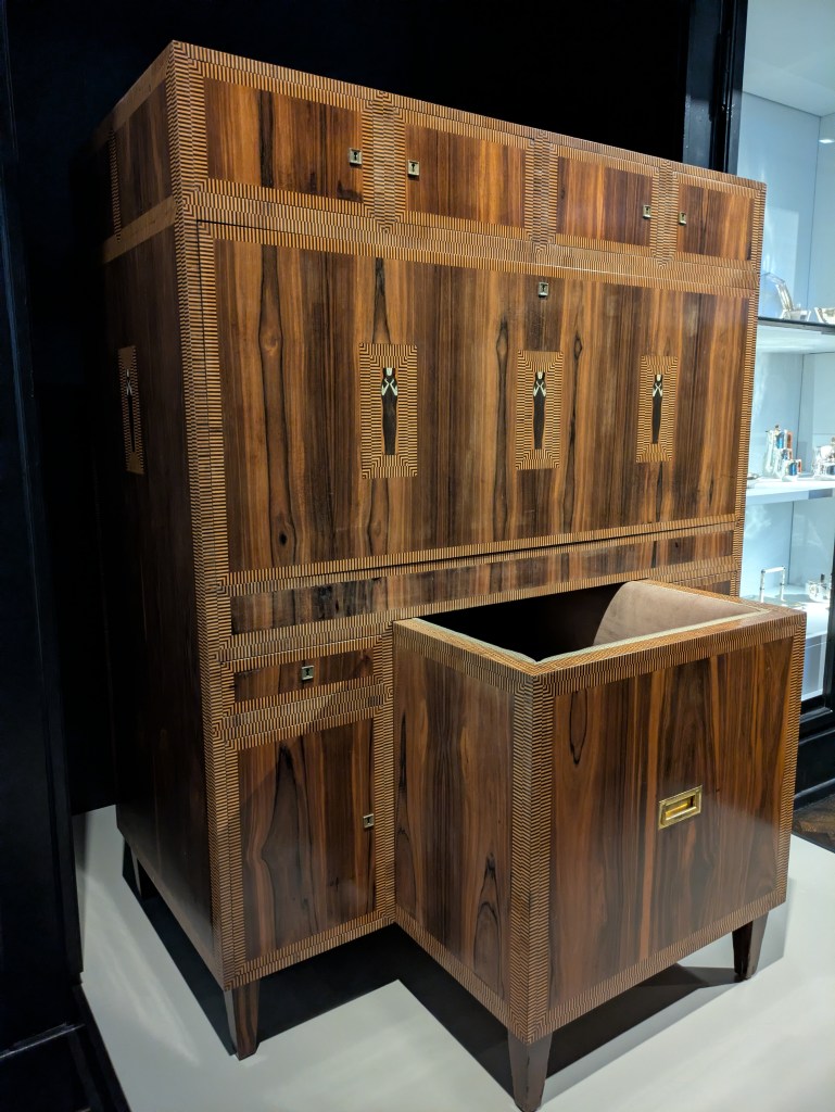 Am nächsten Tag ins nächste Museum: das MAK am Stubenring. Dort ist die fantastische Neuaufstellung von „Wien 1900“ zu bewundern. Wirklich eindrucksvoll gemacht! Möbel (ganze Zimmer), Stoffe, Kleider, Plakate, Designobjekte, dazu originelle Zeittafeln. Sehr sehenswert!